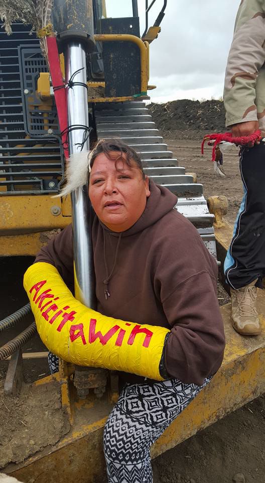 LOCKDOWN: LAKOTA VROUW EN AMAZON NATIVE VASTGEKETEND AAN PIJPLIJN MACHINE ‘NoDAPL’