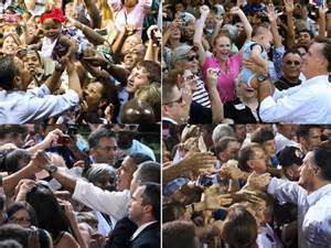 De sprekers gillen hen toe dat ze op hen moeten stemmen.